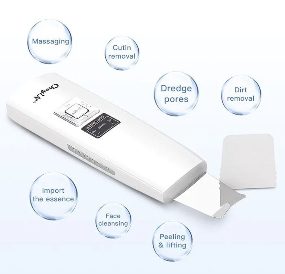 Ultrasonic Facial Skin Scrubber is perfectly designed to do 3 things: remove blackheads and acne, tighten and firm skin, and increase product absorption.
