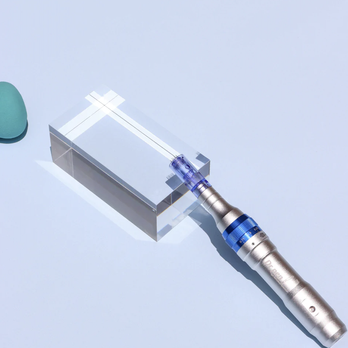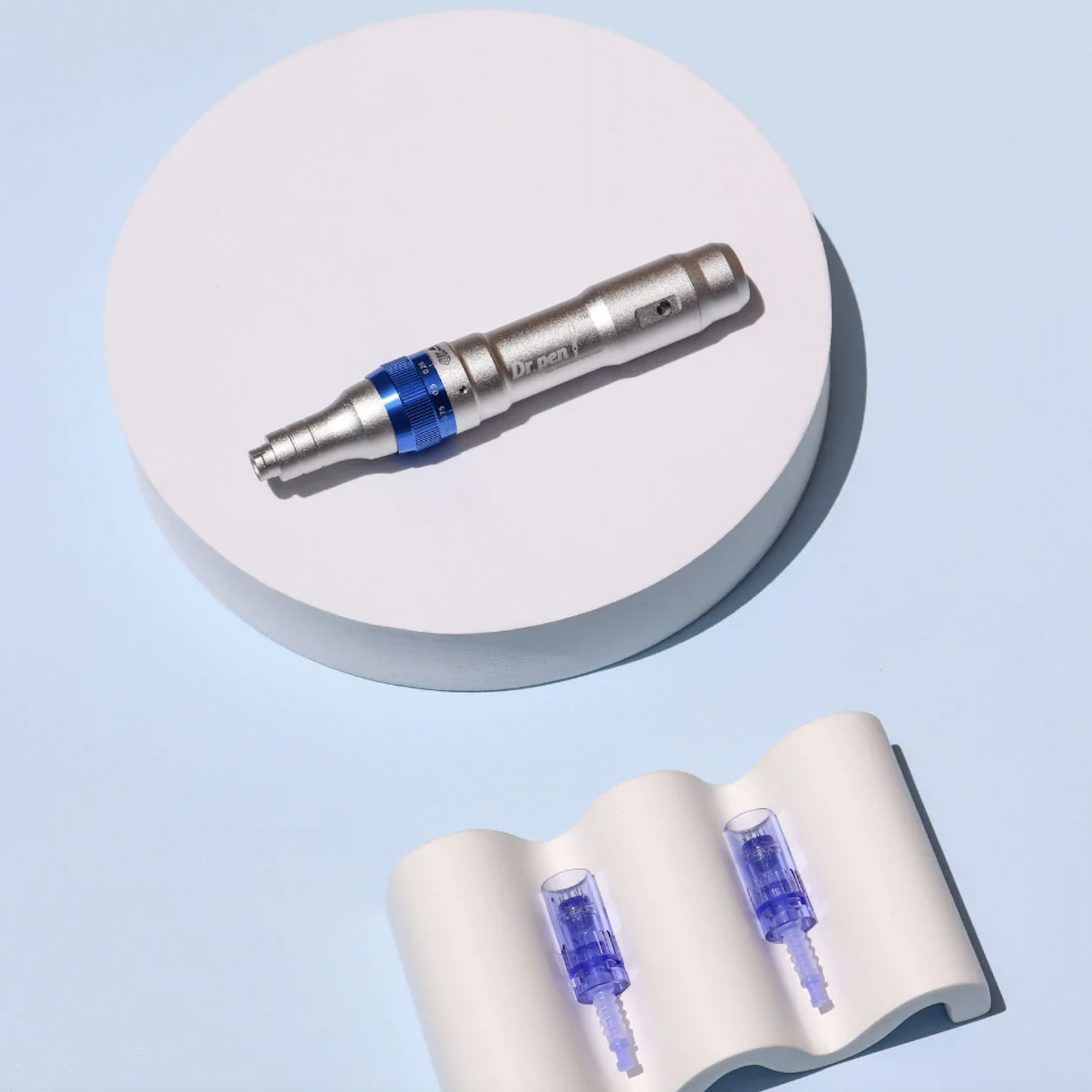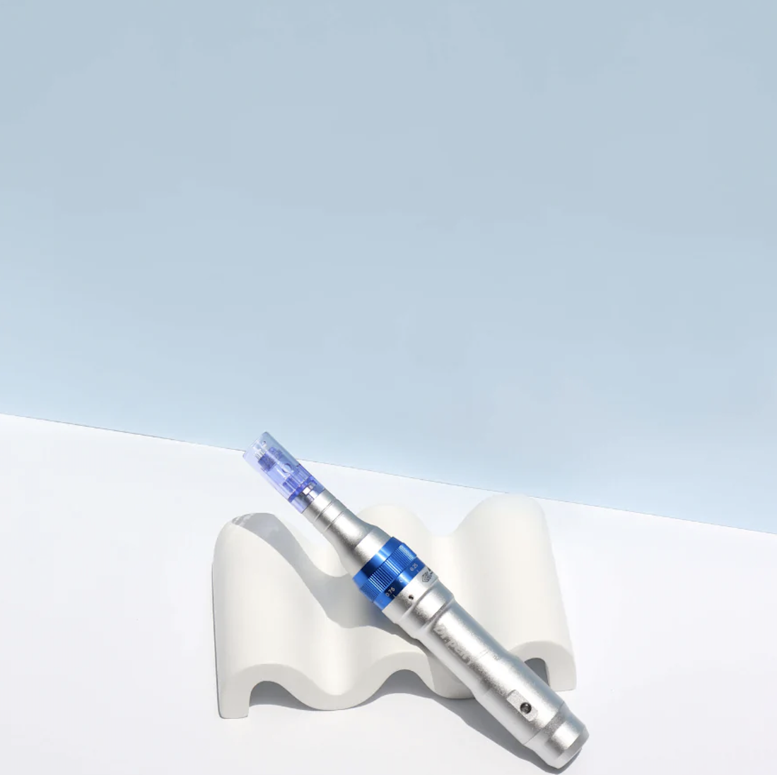 The needles create tiny micro-cavities in the skin's surface. This stimulates the regenerative processes that naturally take place in the skin everyday. This, in turn, stimulates an increased production of collagen and elastin causing the skin to become firmer, for scars to gradually reduce and for wrinkles to smooth out. The Pen can be used multi-directionally so the treatments can be performed on any area of the face, neck, neckline, stomach, thighs, buttocks or scalp.